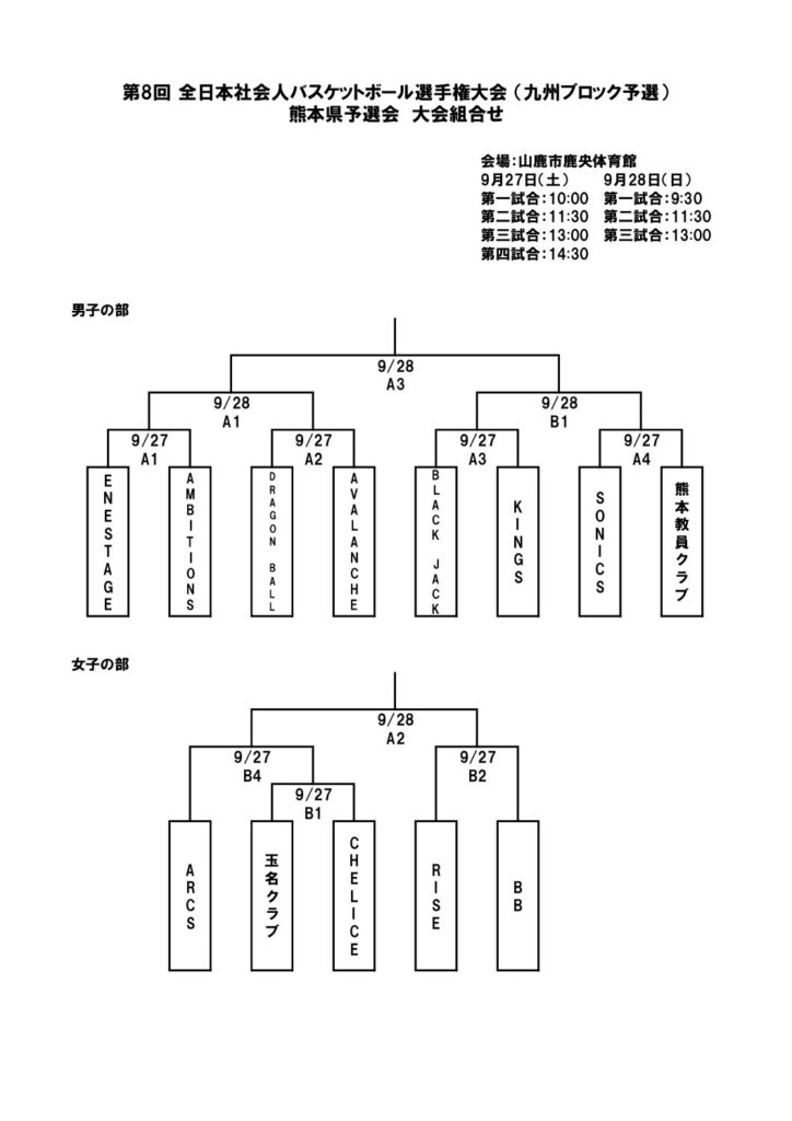 第8回 全日本社会人バスケットボール選手権大会 (九州ブロック予選) 熊本県予選会 大会組合せ